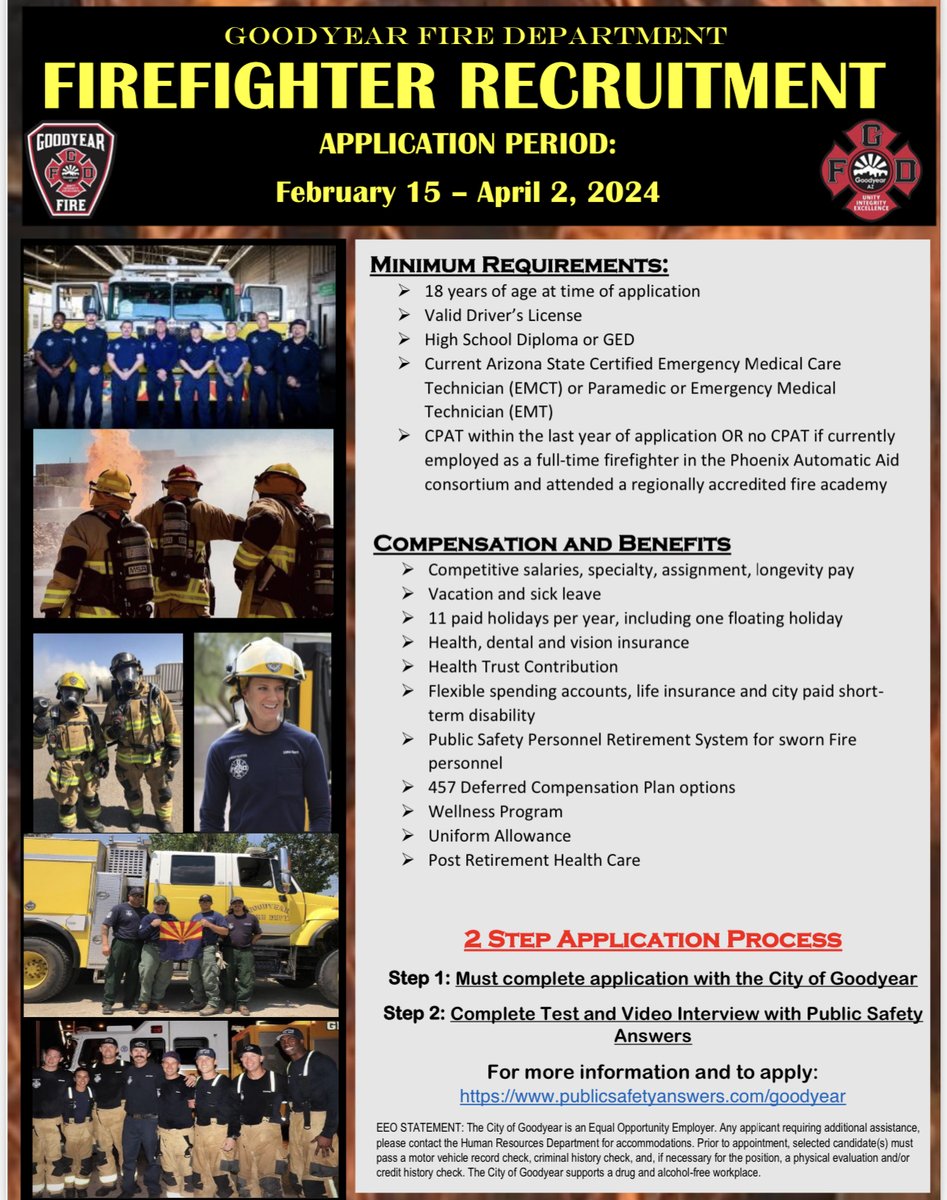 Goodyear Fire Dept. on X: “Applications for recruit firefighter